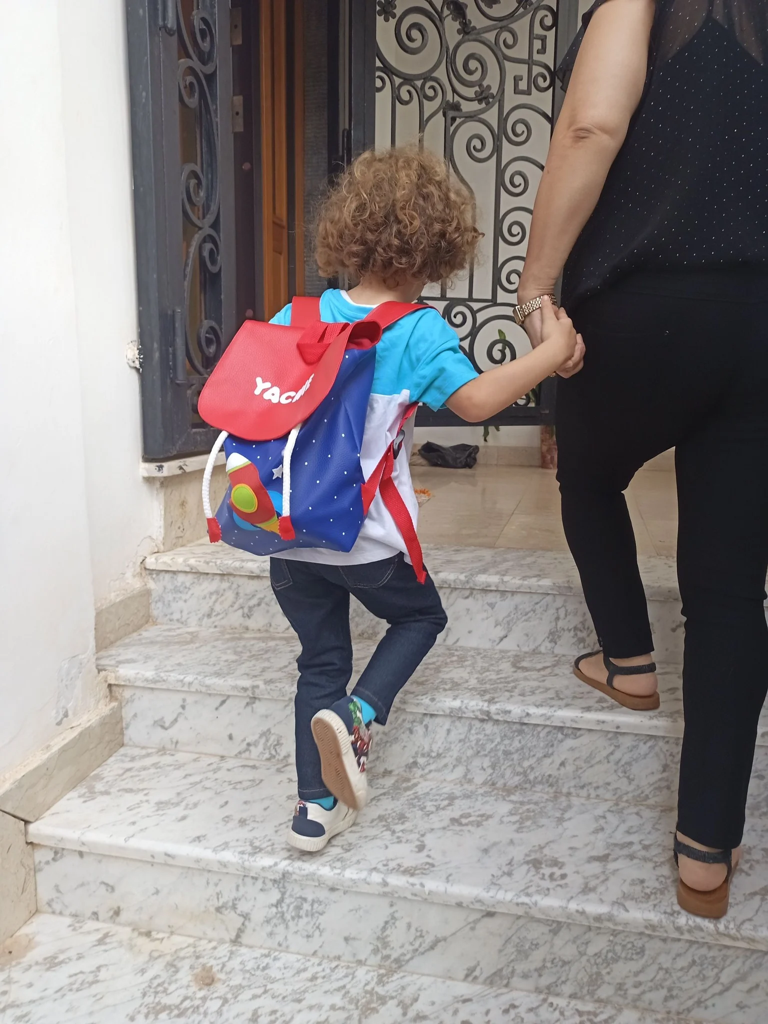 Un jour inoubliable :Mon petit-fils Youba, habillé en Spiderman et portant son cartable avec son prénom dessus, se tient devant la statue de son ancêtre , le roi Juba II. Bravo pour ce beau travail, vous nous avez vraiment fait plaisir!"